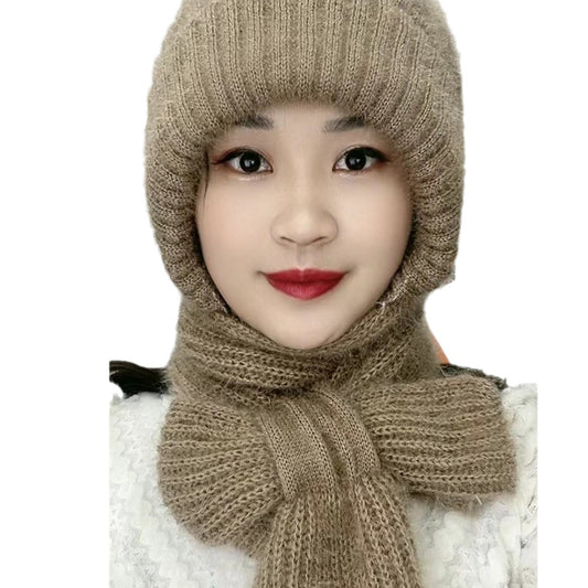 Autumn And Winter Squirrel-velvet Double-layer Knitted One-piece Scarf Hat