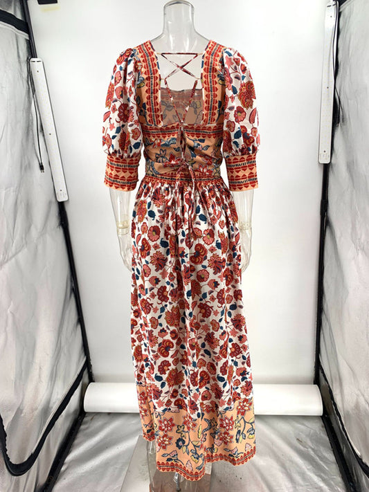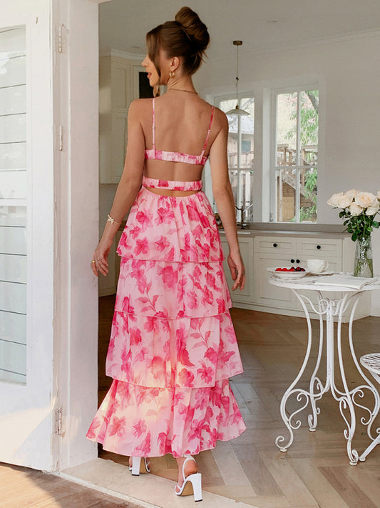 Casual Print Top Square Neck Skirt Two-Piece Set