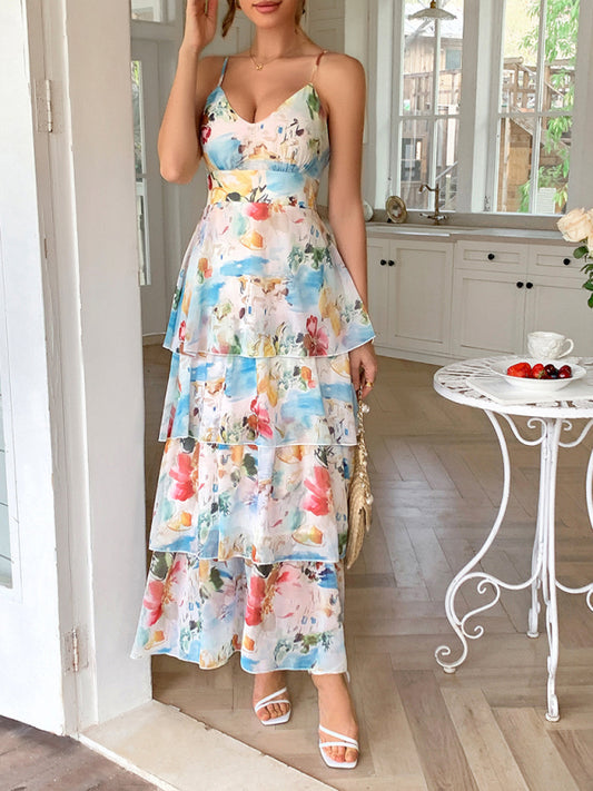 New ethnic style printed V-neck cardigan with small flying sleeves vest shirt