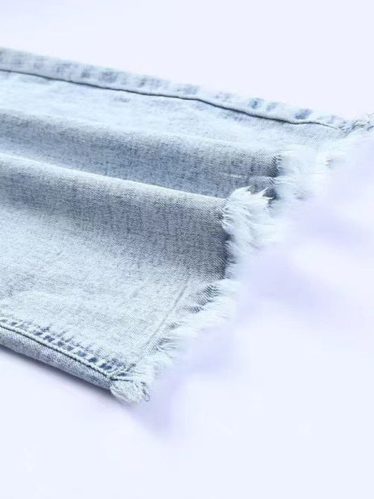 Pantalones vaqueros rotos de cintura alta lavados Micro-Boom para mujer