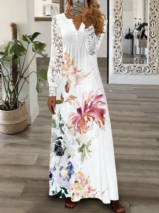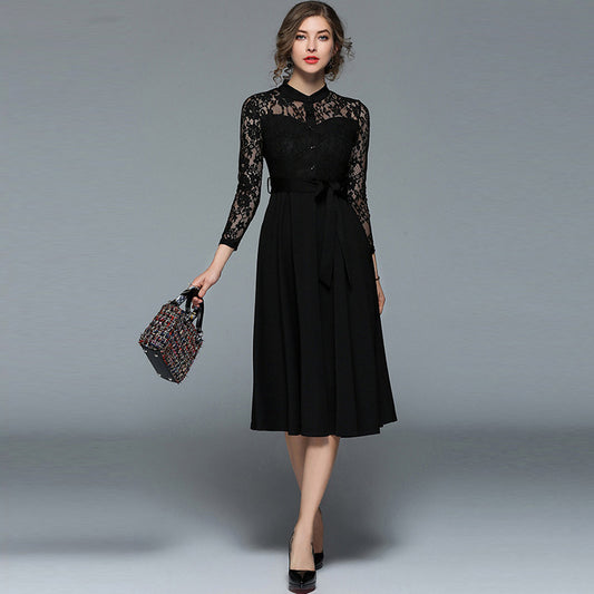 Vestido largo de encaje de estilo europeo y americano de nueva moda para mujer