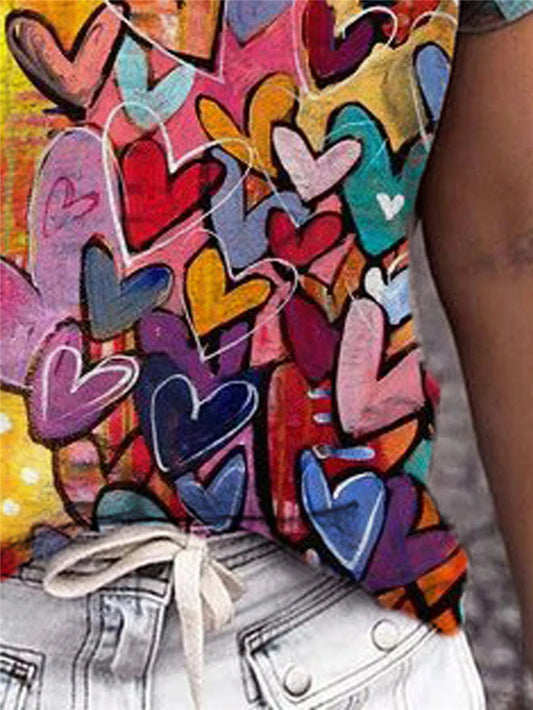 Camiseta holgada de manga corta con escote en V y estampado personalizado