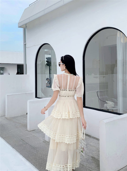 Vestido largo francés de manga corta con falda de pastel