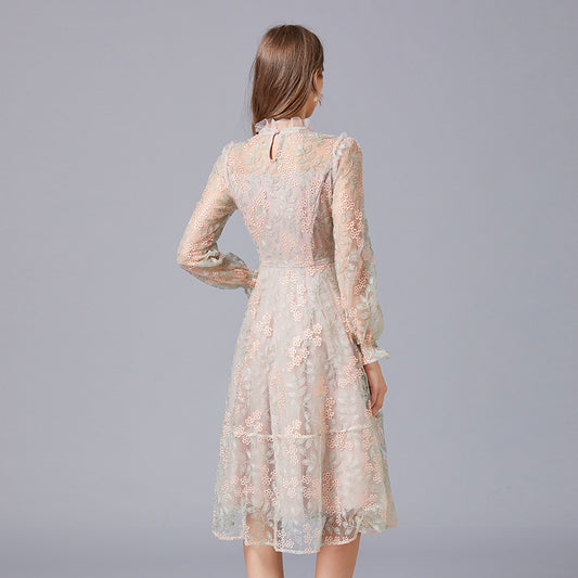 Vestido de malla de hilo con bordado pesado, falda de feminidad