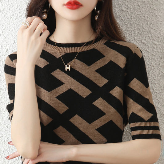 Camiseta de manga corta de punto de algodón de moda para mujer