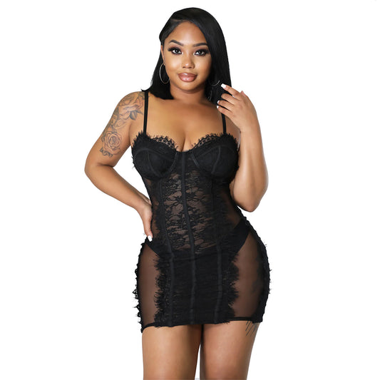 Vestido de encaje con tirantes de moda para mujer