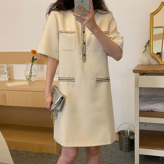 Vestido de punto estilo coreano temperamento cuello alto falda a la cadera