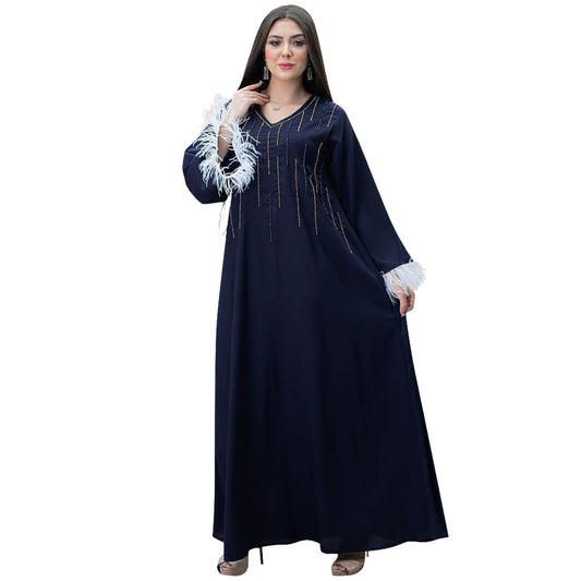 Elegante vestido de novia de noche con escote en V profundo y manga larga en color negro