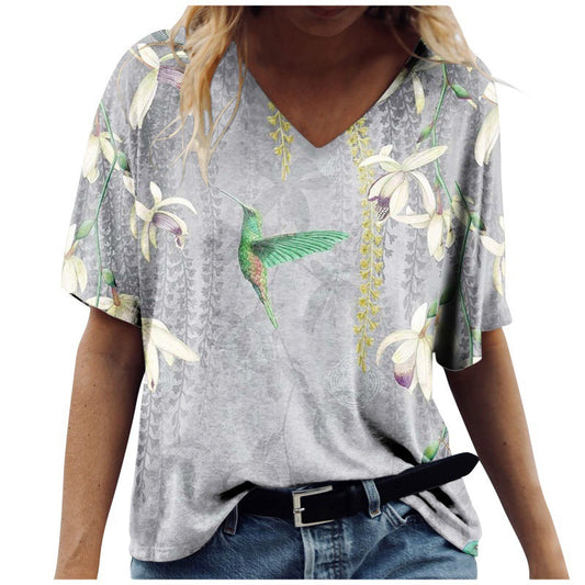 Camiseta holgada europea y americana con cuello en V 3D y mangas cortas
