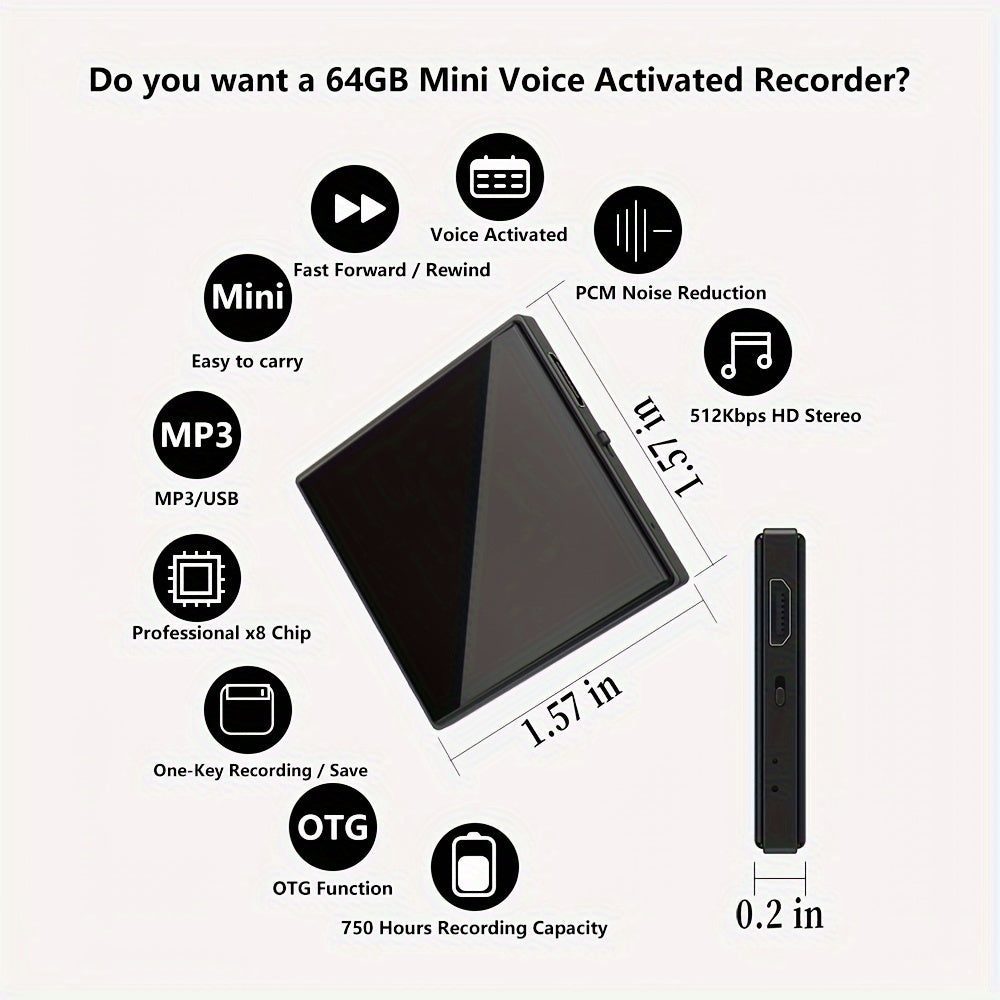- Storage Capacity: 64GB, supports up to 4000 hours of recording