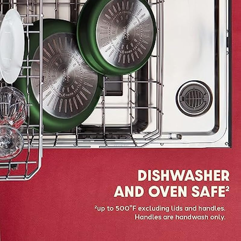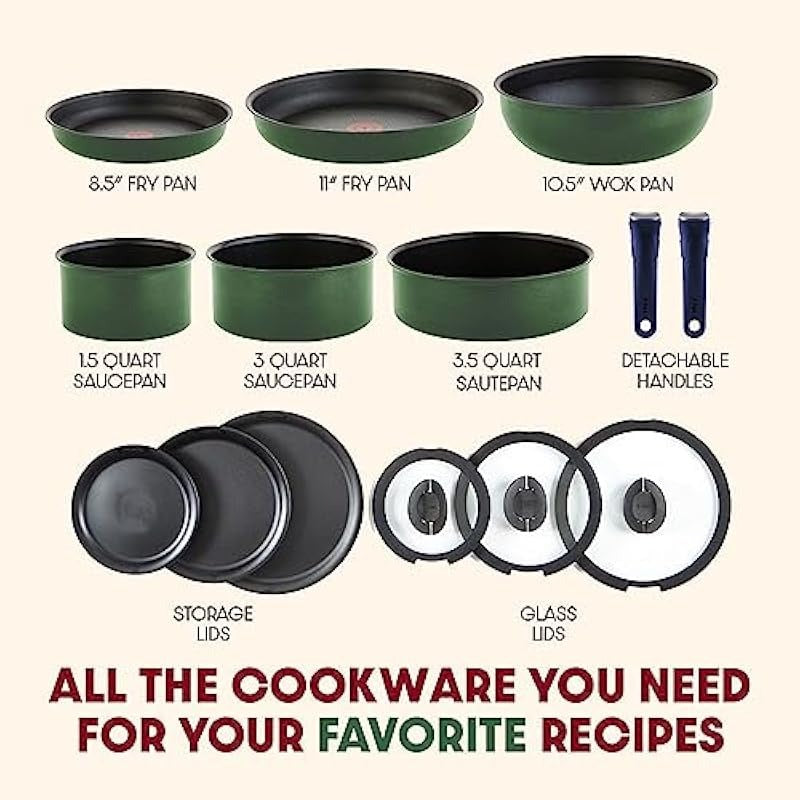 14 Pcs Nonstick Cookware Set - Induction, Oven & Broiler Safe (500°F), Dishwasher Safe, Detachable Handle, Forest Green