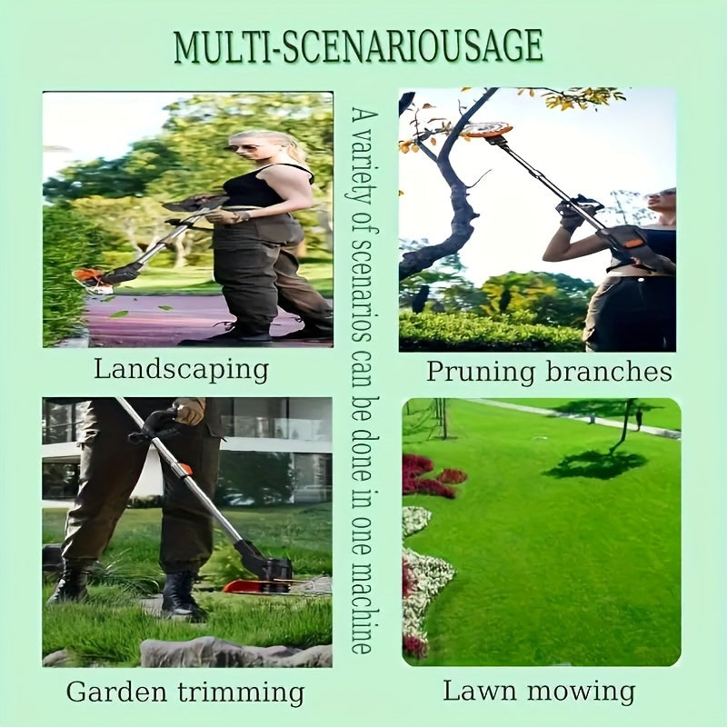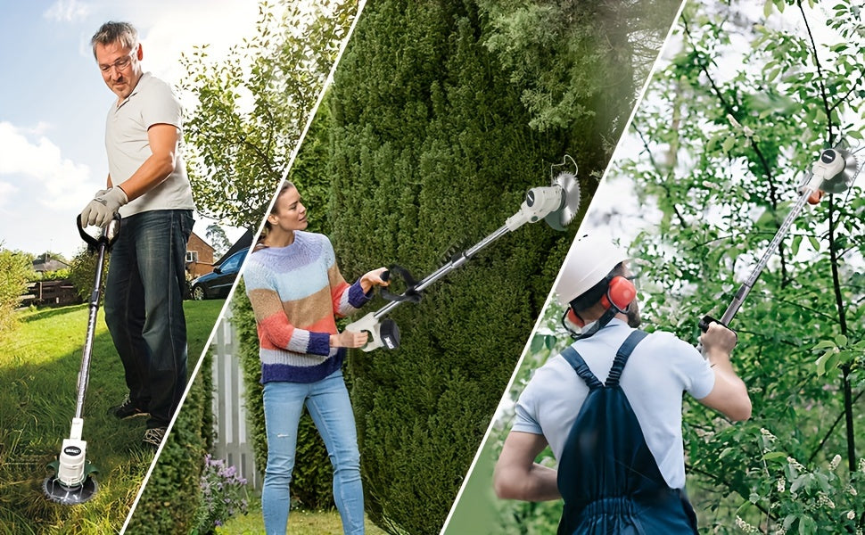 【Electric Weed Cordless Eater 】Cordless weed wacker combines multiple functions - grass trimmer/edger/brush cutter. Delivers Impressive Cutting Power. Say goodbye to the noise and emissions of gas-powered trimmers.