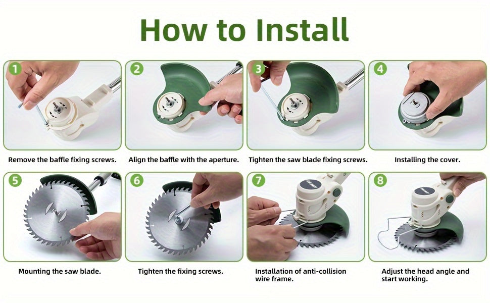 【What will you get】Weed wacker Package includes: Weed Wacker *1, Socket 2rench *1, 6-inch Round Blade *2, Diamond blade *2, Nylon Blade*5, Charger *1, 1.3Ah Battery *2, Grass guard *1, Crash net *1, Gloves *1 Pair, Goggles *1, Carry Handle *1, Manual *1. If you have any problems, just feel free to contact us anytime!