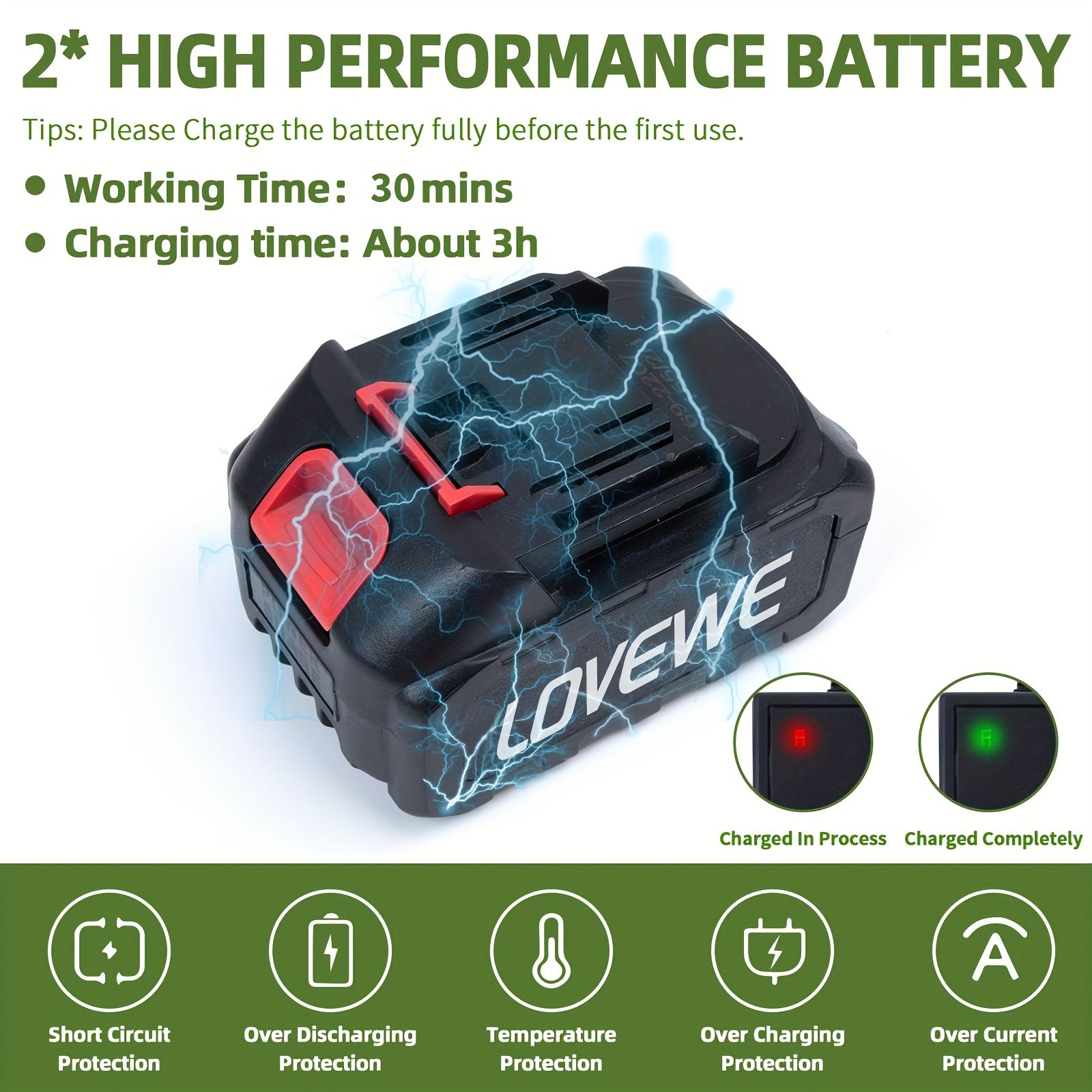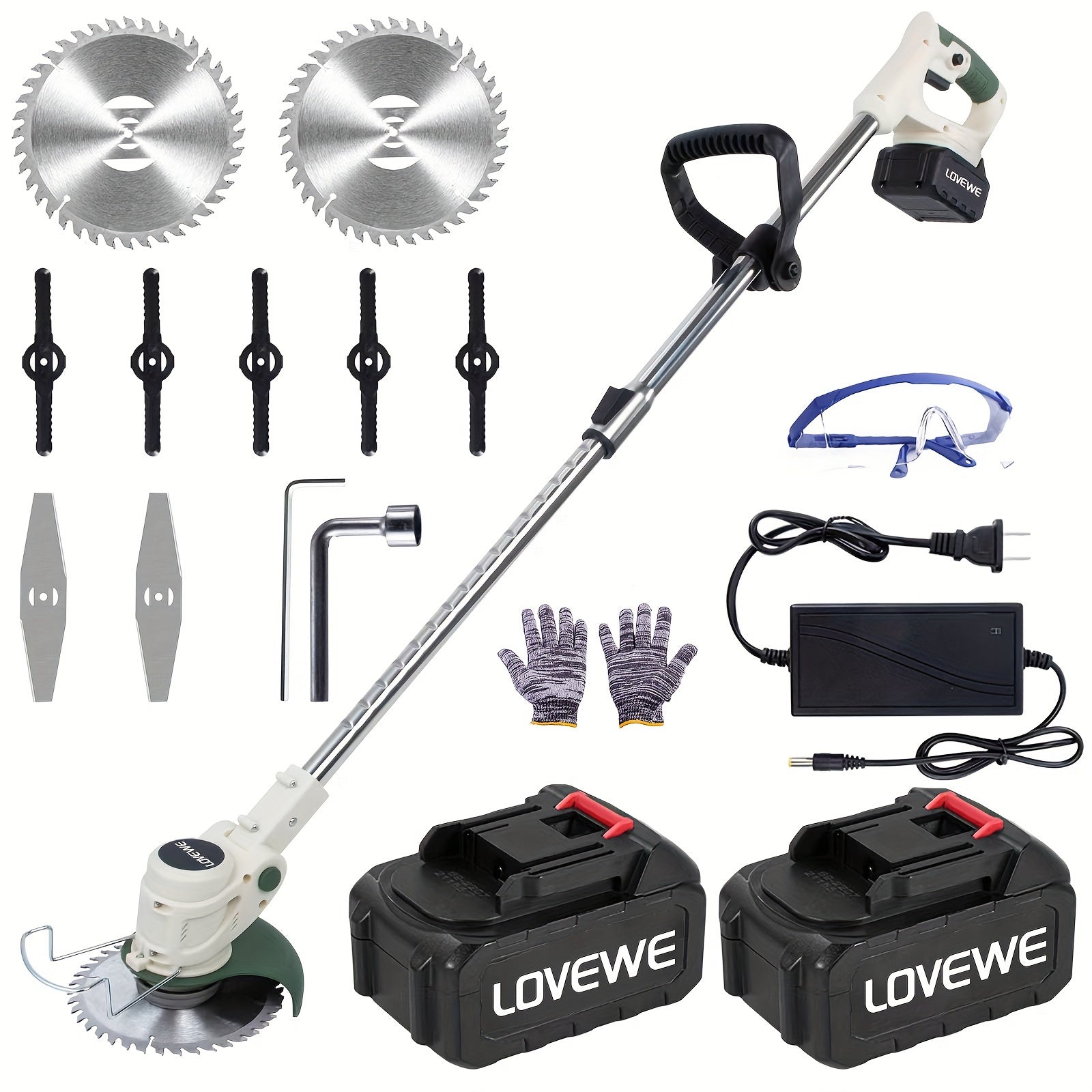 【Cordless Convenience】Lovewe 21V cordless electric weed wacker comes with 2pcs 1.3 Ah rechargeable lithium batteries. This weed cordless eater delivers consistent cutting performance for extended periods. You are freed from the trouble of tangled wires and can work freely in your yard with the weed wacker cordless.