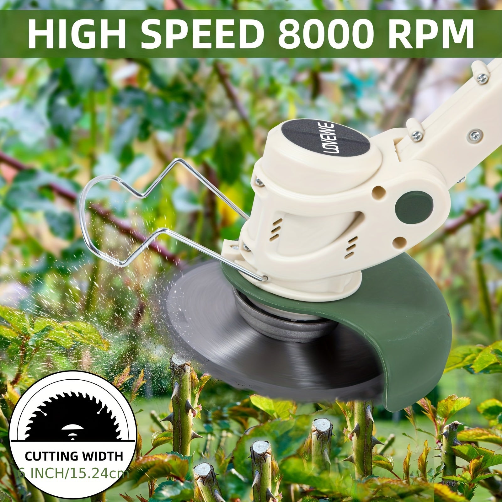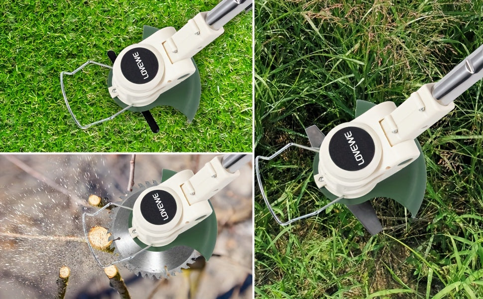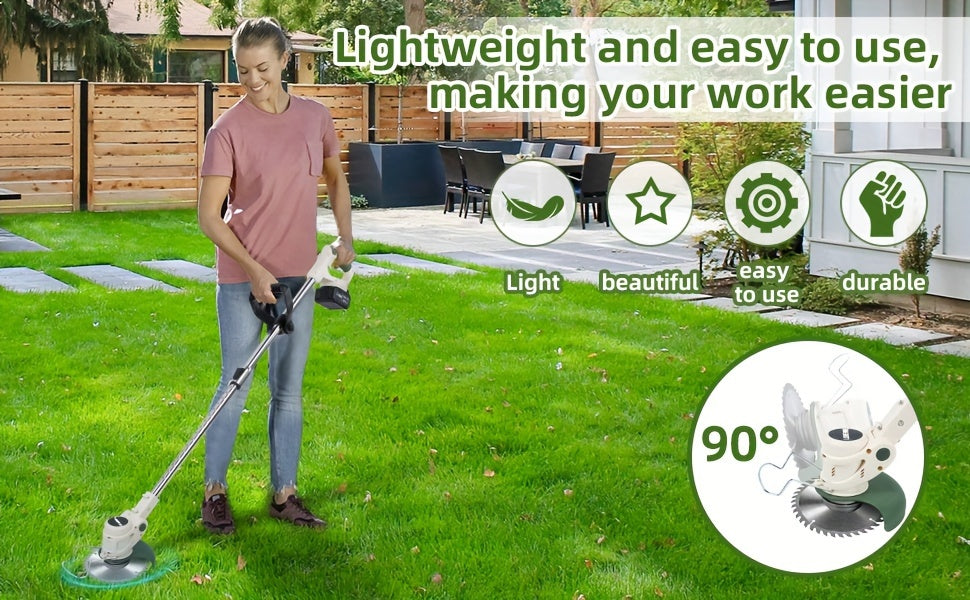 【Versatile Design】Weed wacker battery powered comes with three types of cutting blades, 2*6-inch Round Blade, 2*Diamond blade and 5*nylon blade providing you with the versatility to tackle a variety of lawn maintenance tasks.