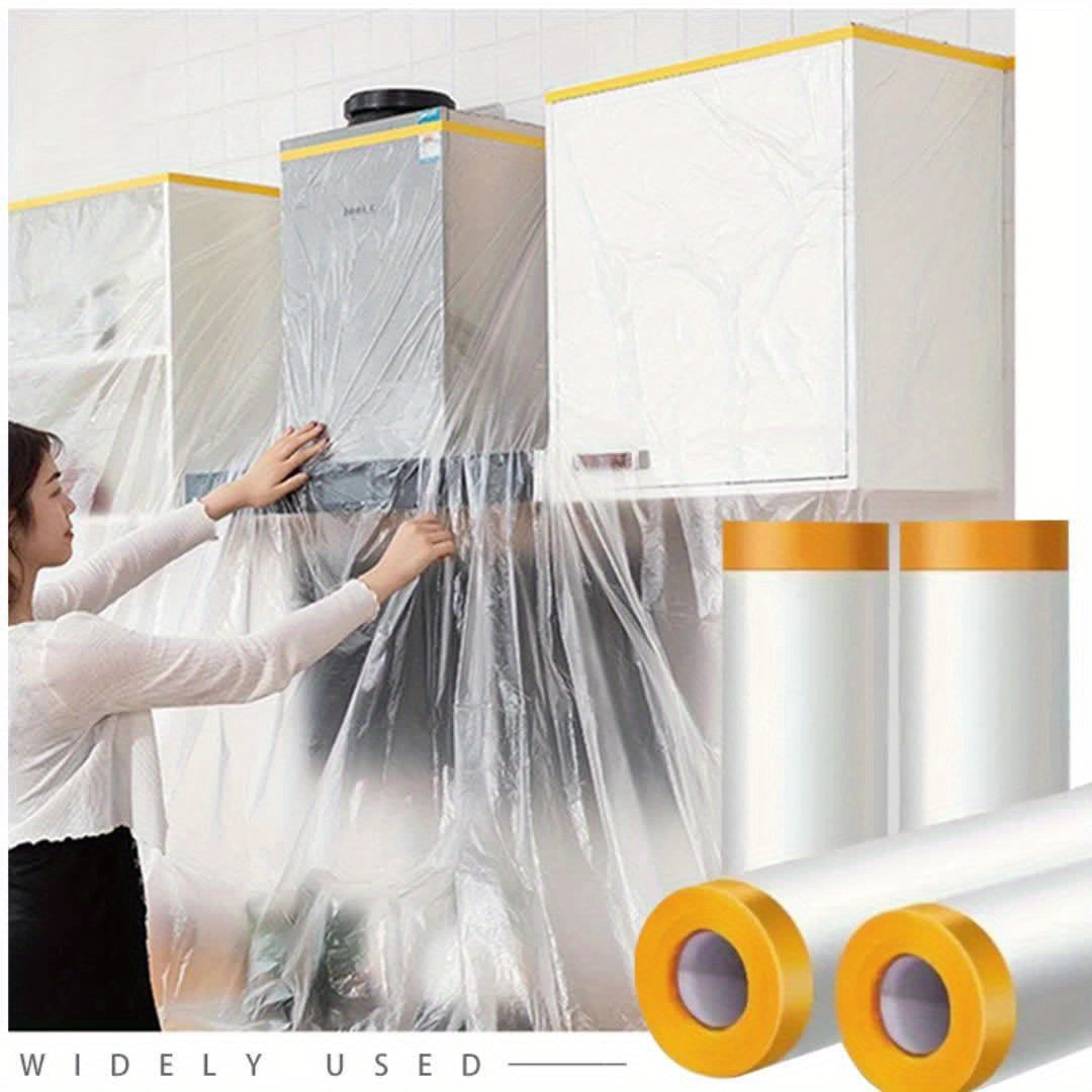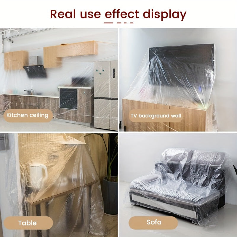 2 Pcs Multi-Purpose Disposable Dust Covers with Tape, Transparent PE Film for Furniture Protection During Travel, Renovation & Cleaning