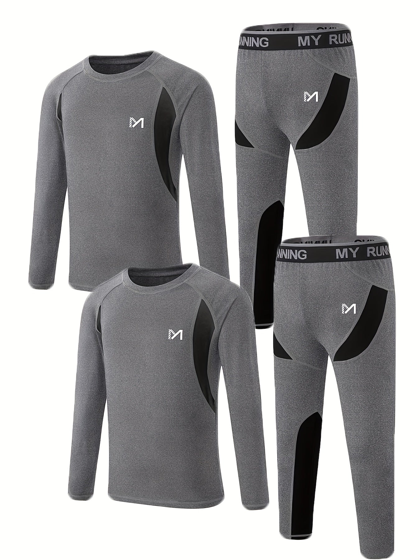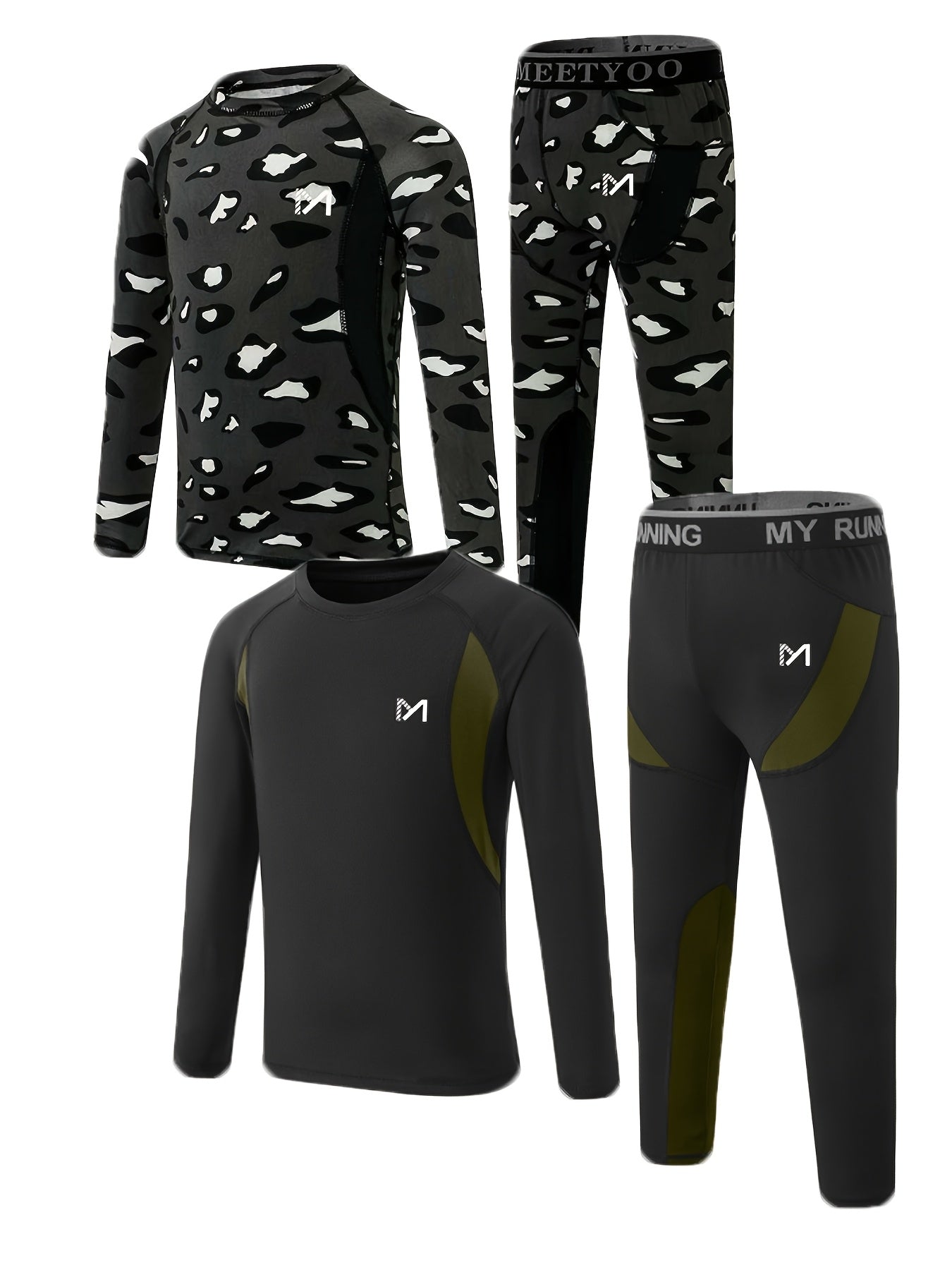 4 Pcs Youngsters' Warm Winter Underwear Set - Long Sleeve Top & Pants, Comfortable and Cozy