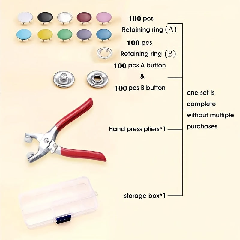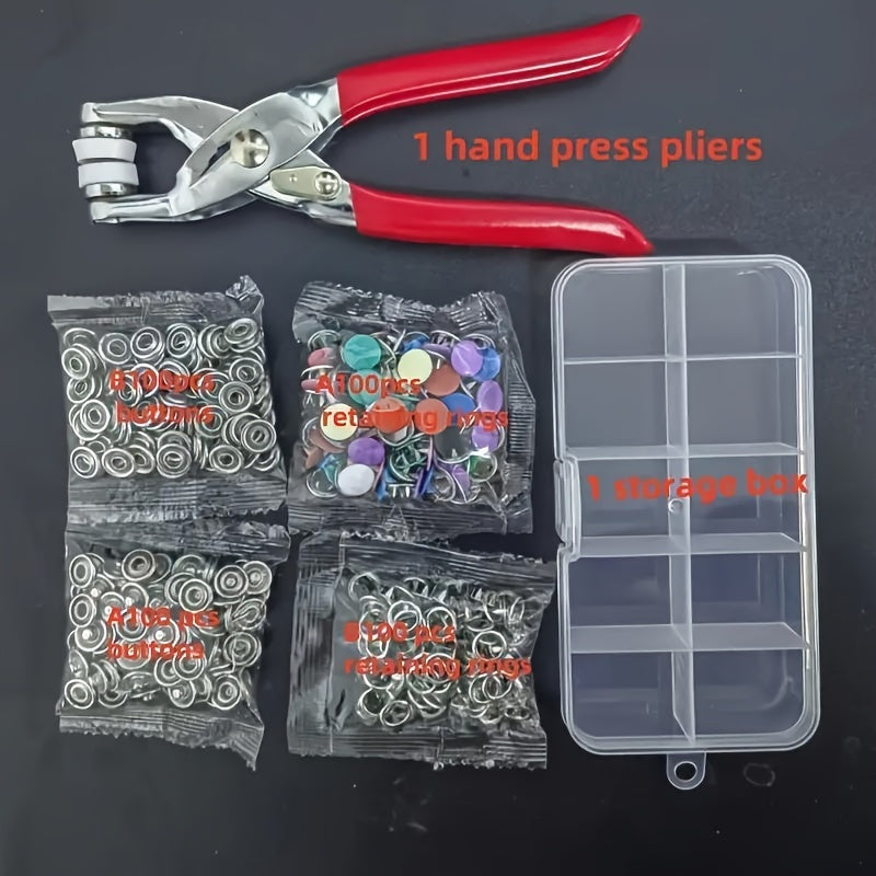 402 Pcs Snap Fastener Kit with Hand Pliers - Easy-to-Use Sewing Fasteners in Multiple Colors, Includes Manual Pressing Pliers & Storage Box - Ideal for Sewing, DIY Crafts, Clothing, Hats, Bags