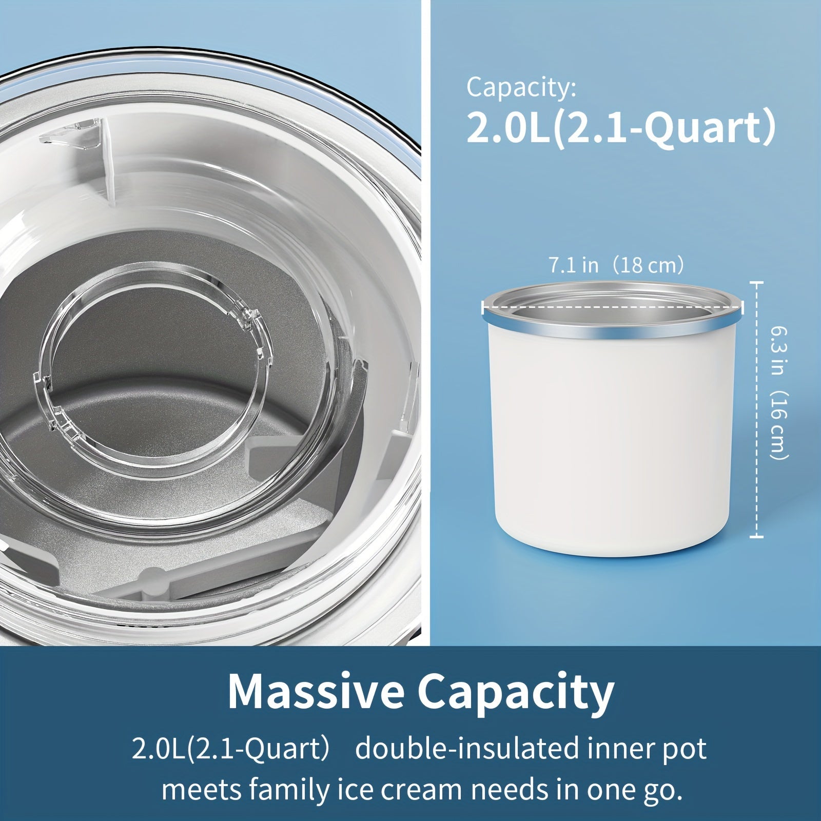 Ice Cream Maker, 2.1-Quart Frozen Yogurt Maker with LED Screen and Timer for Gelato, Milkshakes, Sorbet- Double-Insulated Freezer Bowl, Compact Size