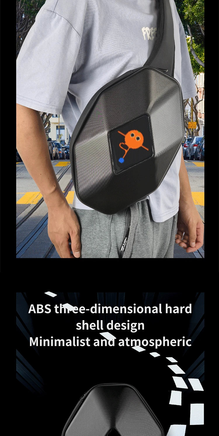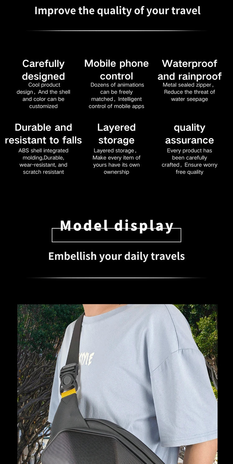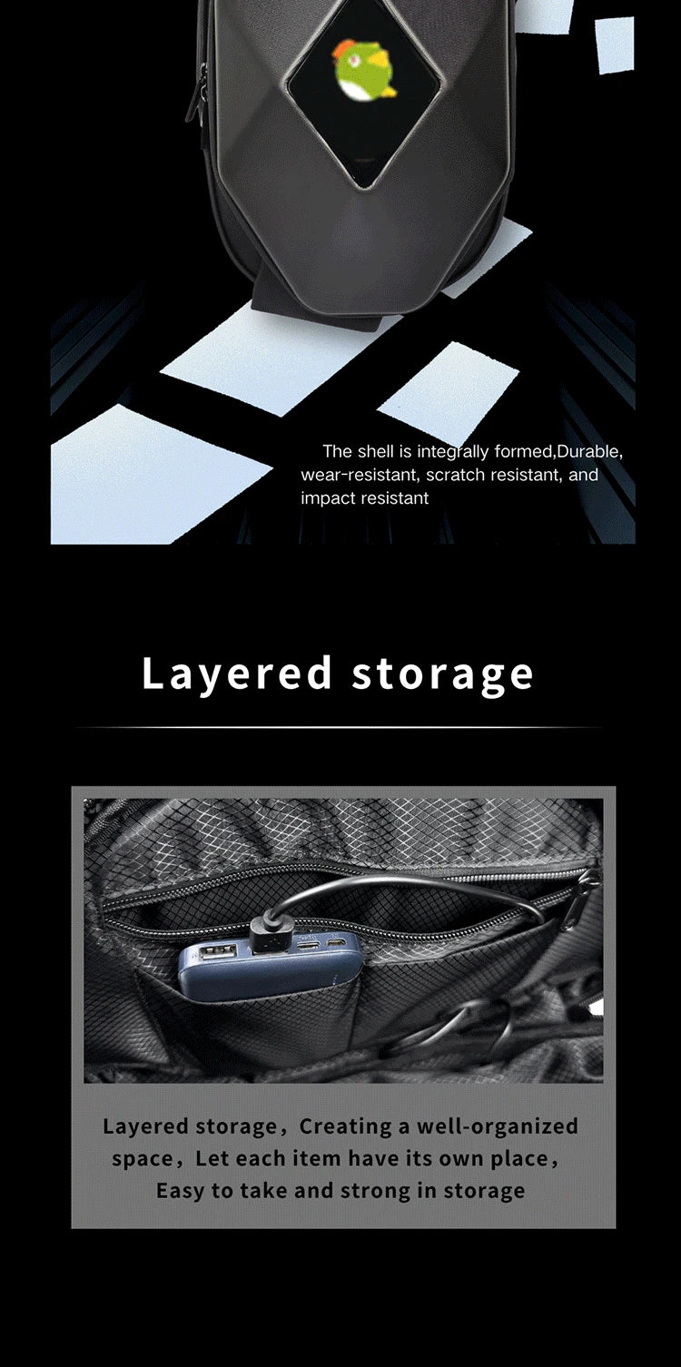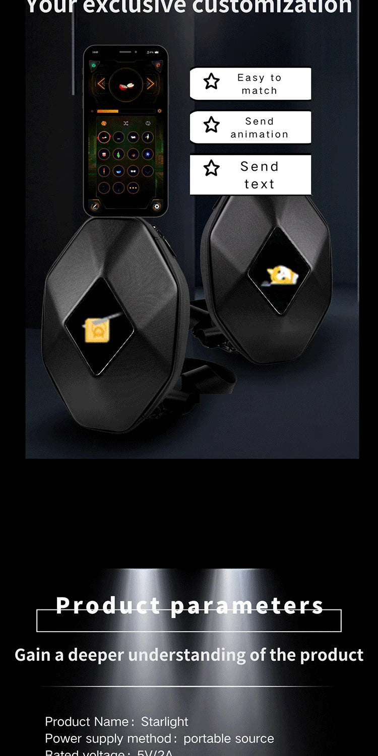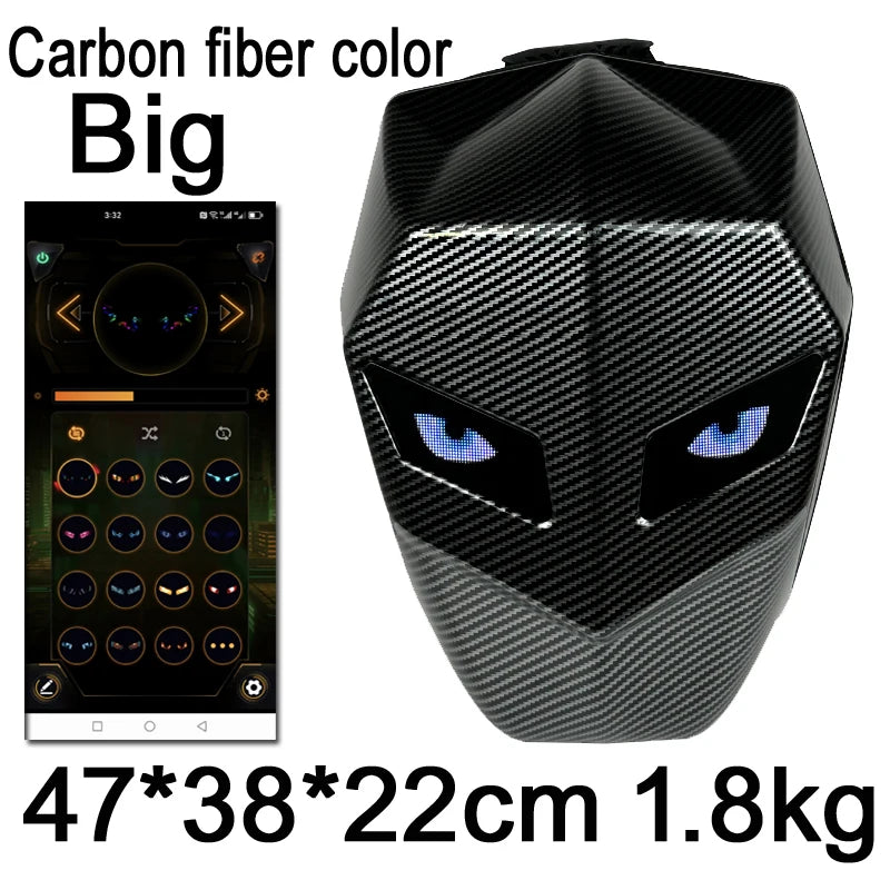 Mochila para motocicleta con LED EYE: bolsa para montar DIY con control por aplicación, carcasa rígida, resistente a la lluvia, compatible con un portátil de 14 pulgadas