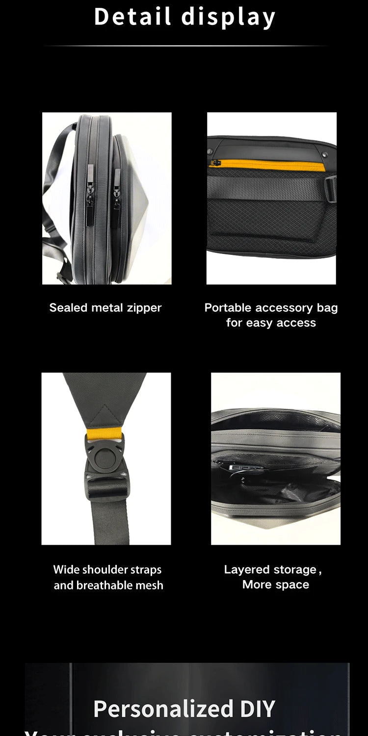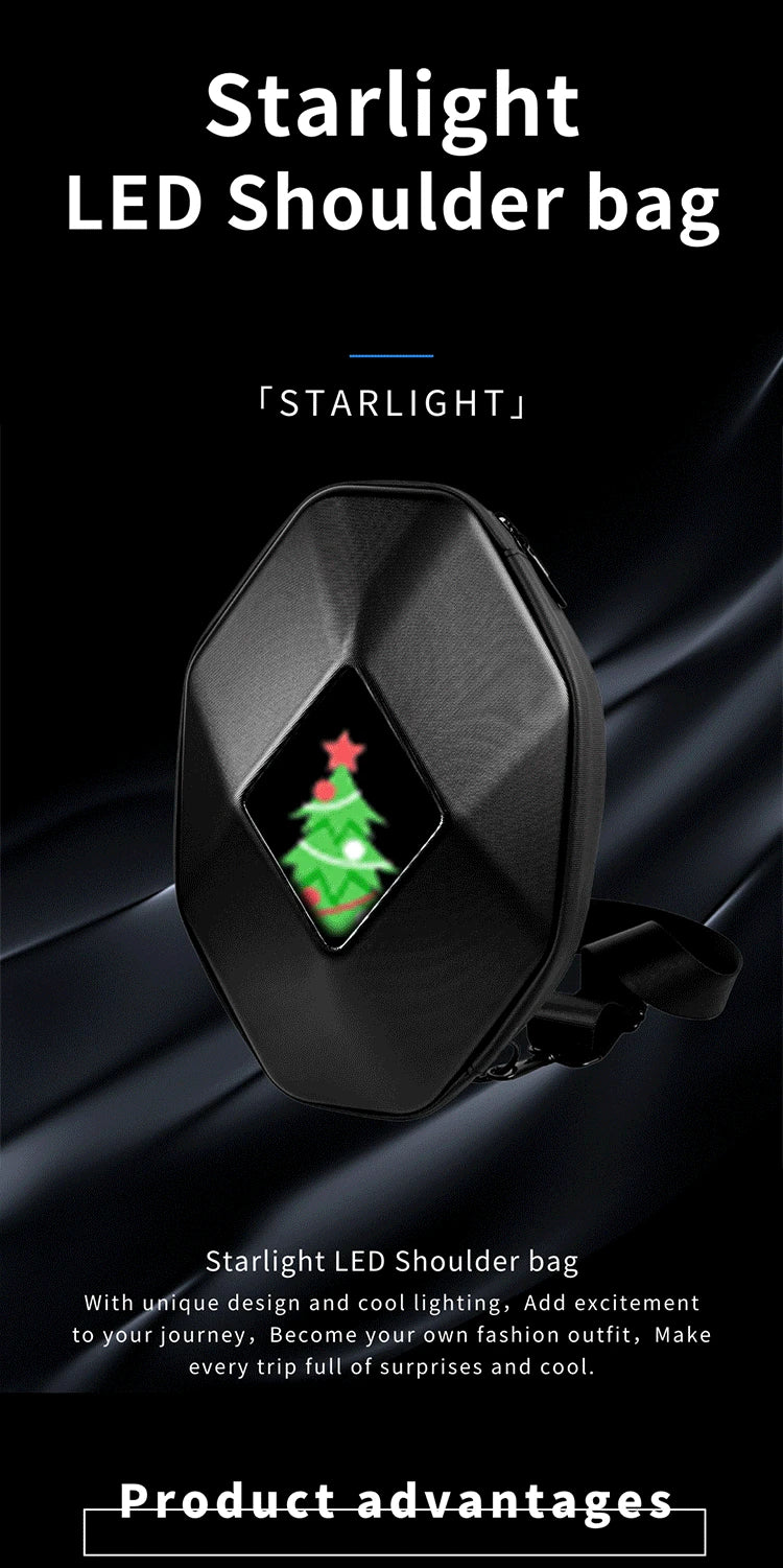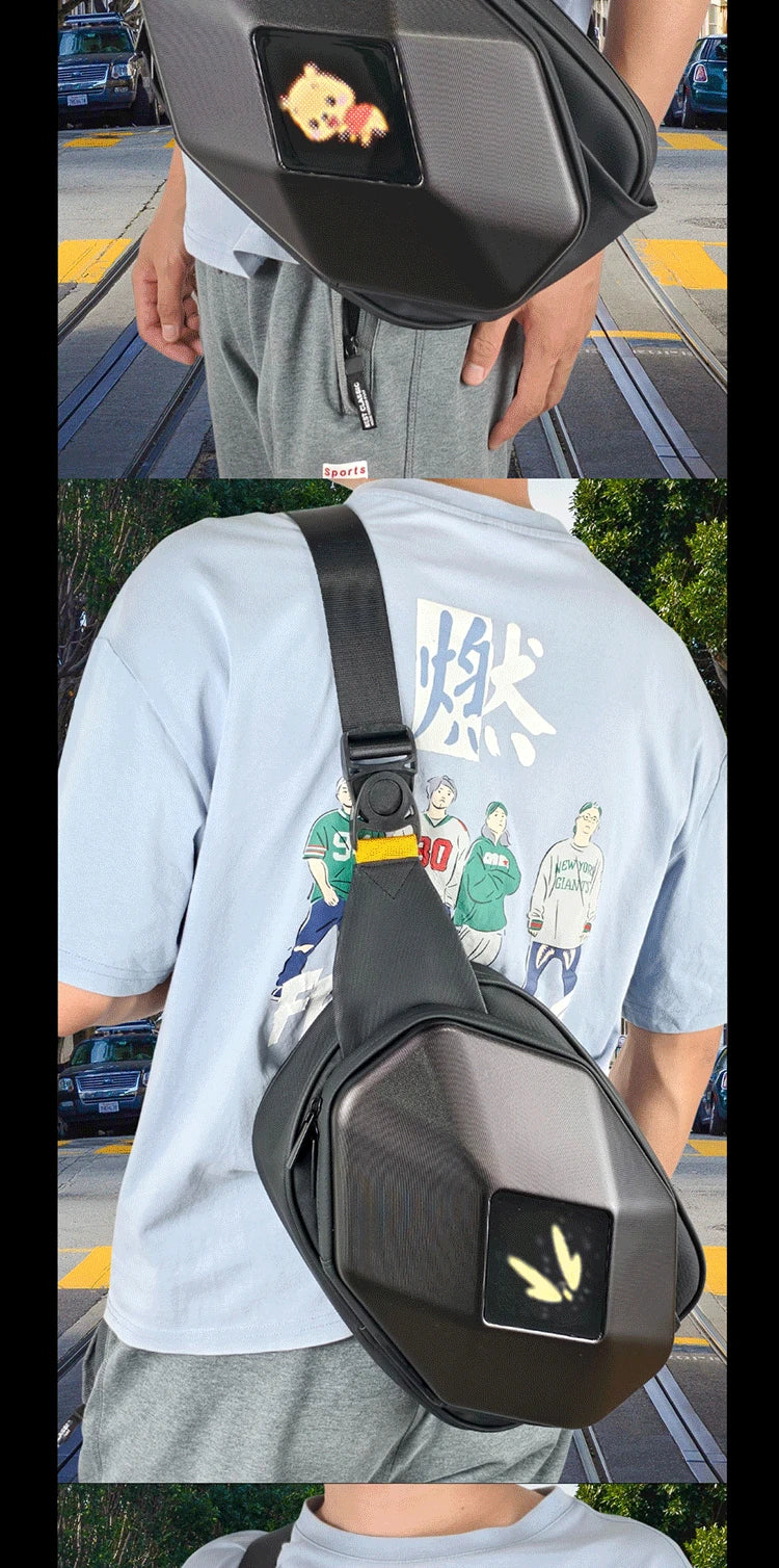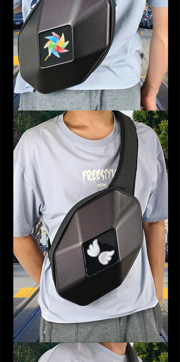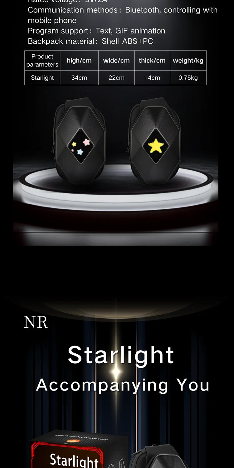 Mochila para motocicleta con LED EYE: bolsa para montar DIY con control por aplicación, carcasa rígida, resistente a la lluvia, compatible con un portátil de 14 pulgadas