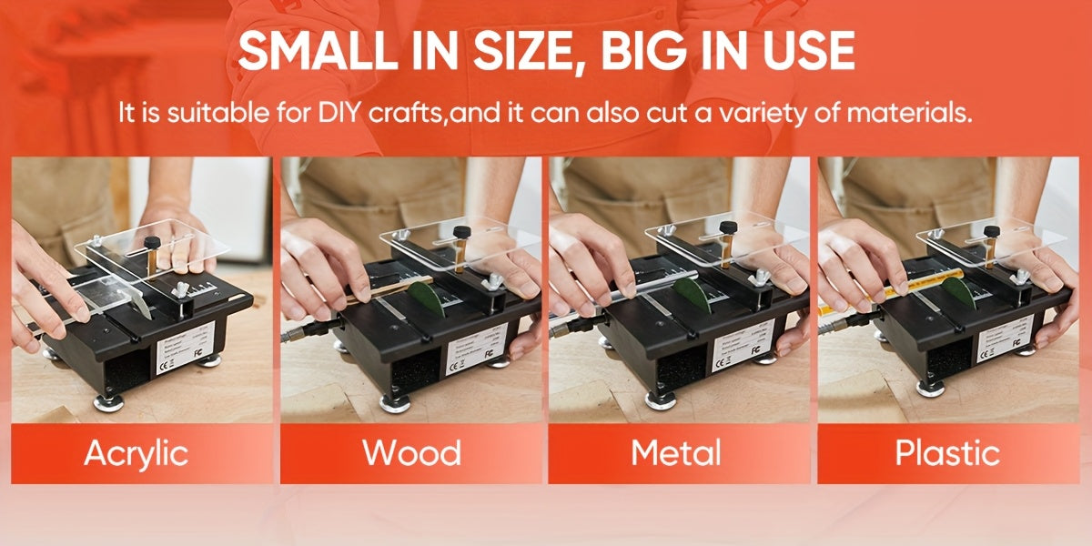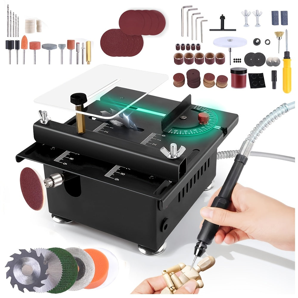 Saker Mini Table Saw, Multi-Functional Portable Adjustable Machine for Cutting, Sanding, Engraving, Drilling, 7-Speed Precision Table Saw