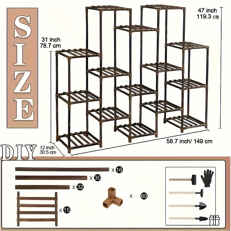 1 Pc 15 Tiers Large Flower Stand, Tall Flower Stand Rack, Can Hold Multiple Potted Plants, Suitable For Living Room Balcony Corner Garden Office Boho Style