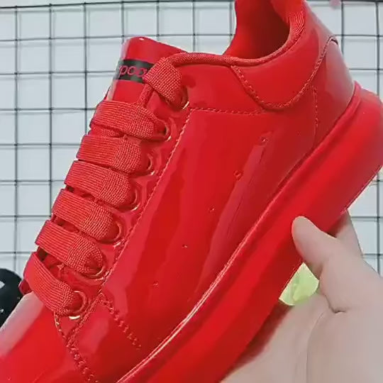 Red Glossy Casual Shoes – Breathable Sports Skateboard Shoes