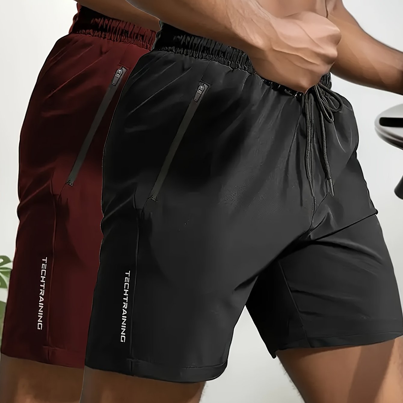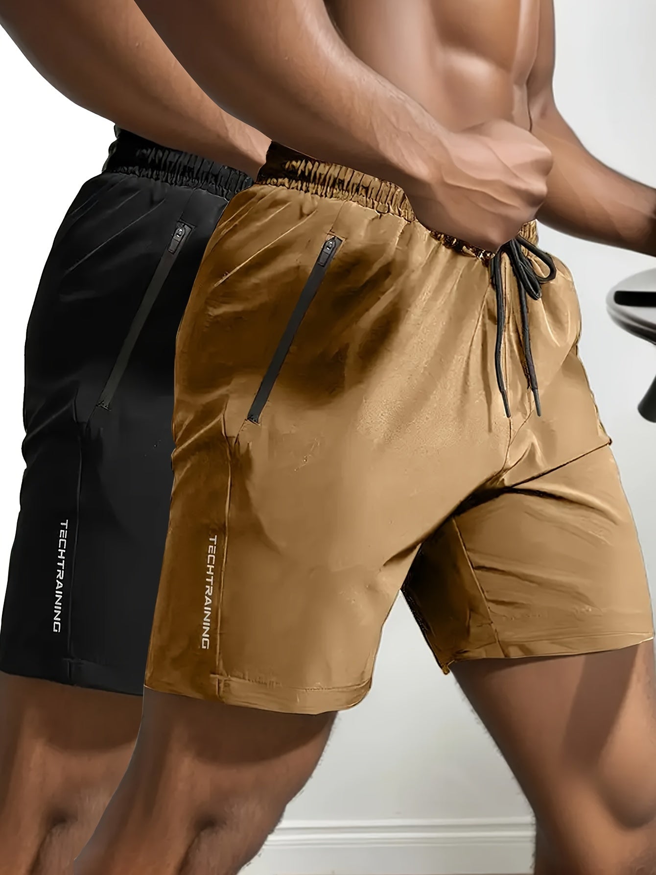 2pcs Men's Letter Print Casual Shorts With Pockets, Sporty Style Elastic Waist Bottoms, Men's Clothing For Summer Gym Workout