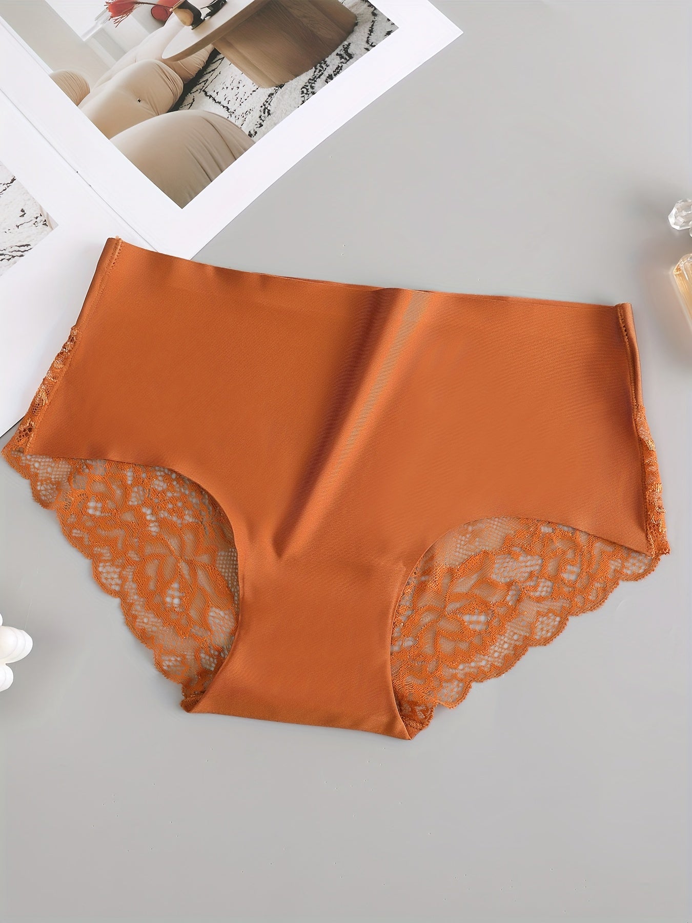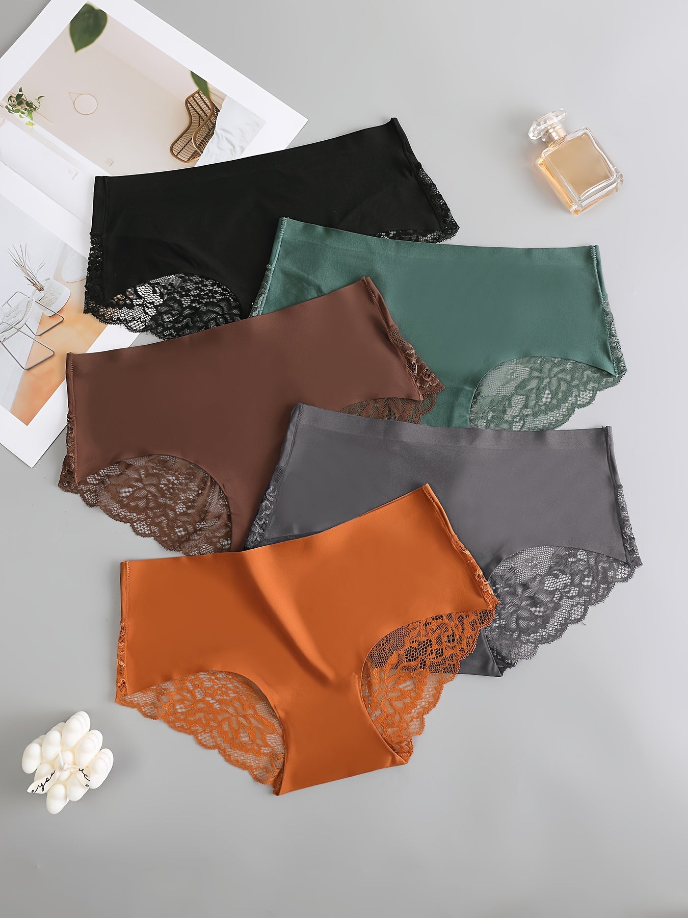 5 Pcs Women's Lace Briefs, Sexy Semi-Sheer Stretchy Underwear, Breathable Lingerie Set