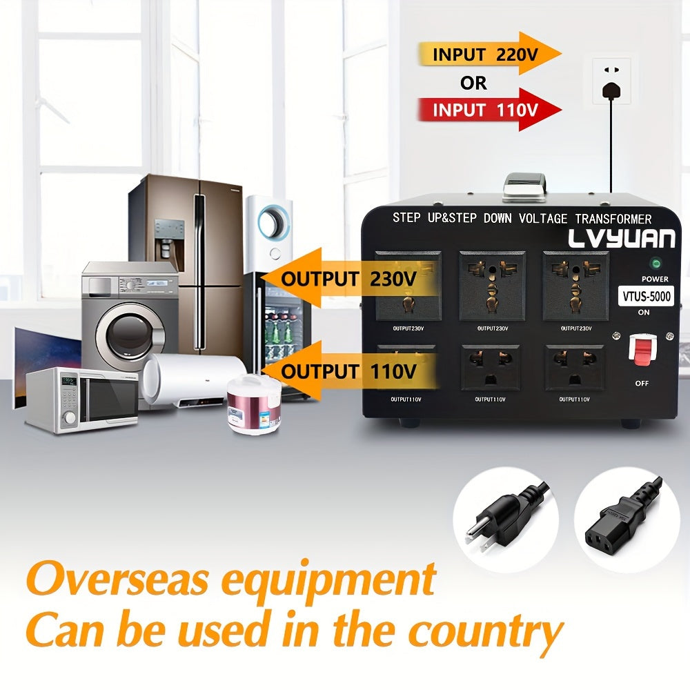 5000 Watt Voltage Converter Transformer Heavy Duty Step Up/Down AC 110V/120V/220V/240V Power Converter with 3 Universal Outlets Resettable Circuit Breaker Protection