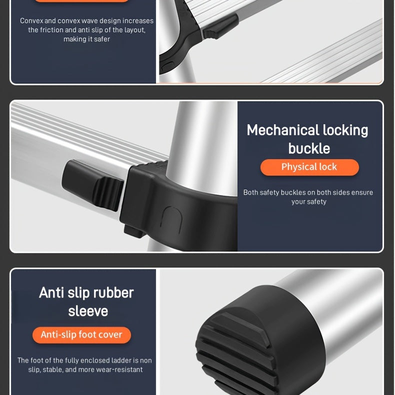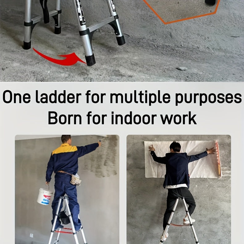 6.5 Ft 7-Step Telescopic Folding Ladder - Herringbone Design, Anti-Shake & Anti-Slip, 330 lb Capacity, Multi-Purpose Outdoor Household Ladder