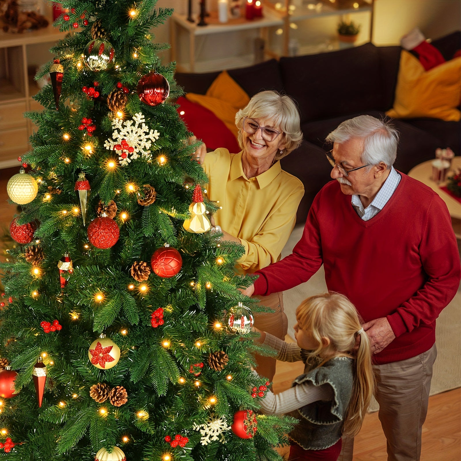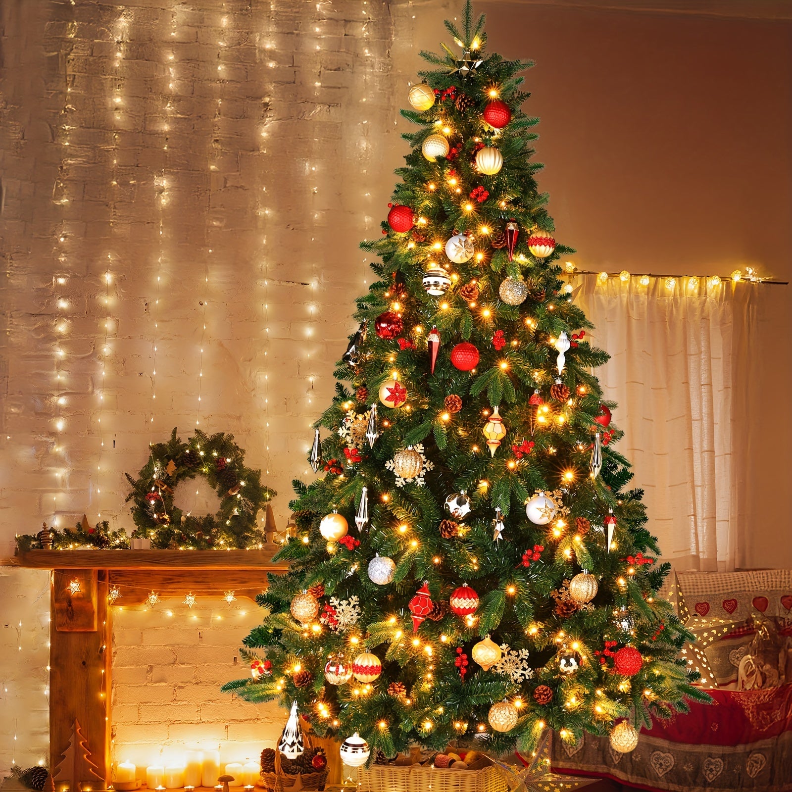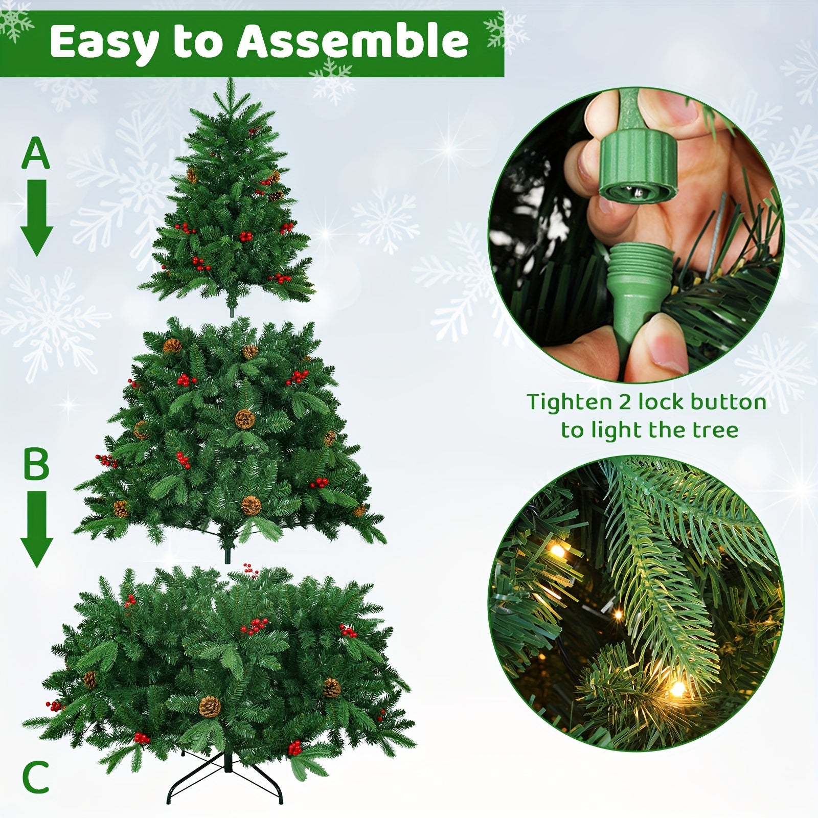 8 Ft/9 Ft Pre-Lit Artificial Christmas Tree with Warm White Light, Pine Cones & Red Berries