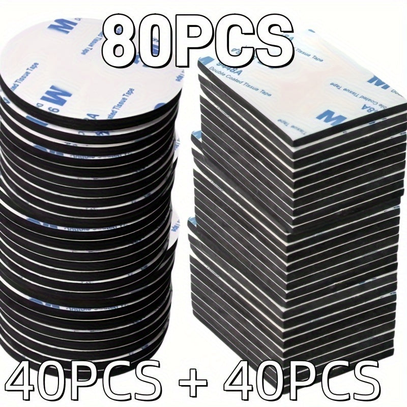 80 Pcs Strong Double-Sided Adhesive Tape Set - Black EVA Foam, Various Shapes, Quick Installation for Walls, Floors, Doors, Wood & Glass