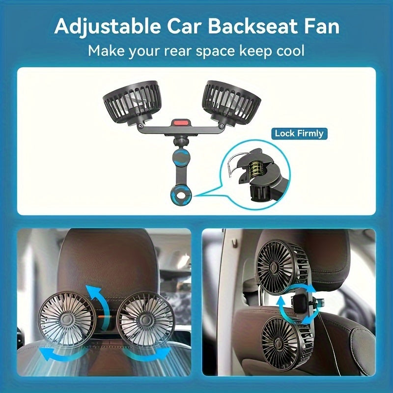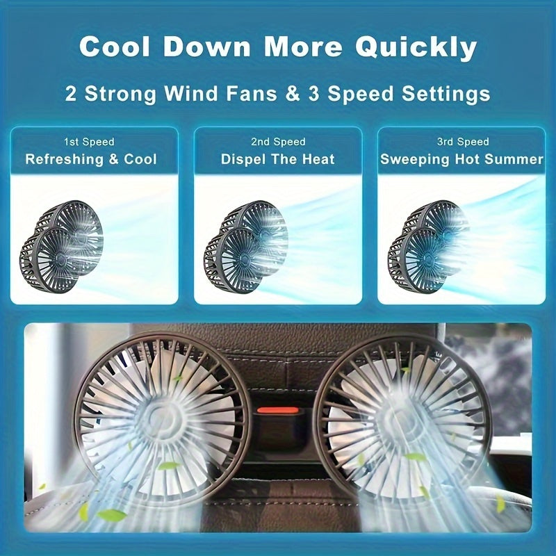 Car Fan - Powerful 12V/24V Dual-Head Electric USB Fan, Portable with Strong Wind for Backseat, Travel, Picnic, and Beach