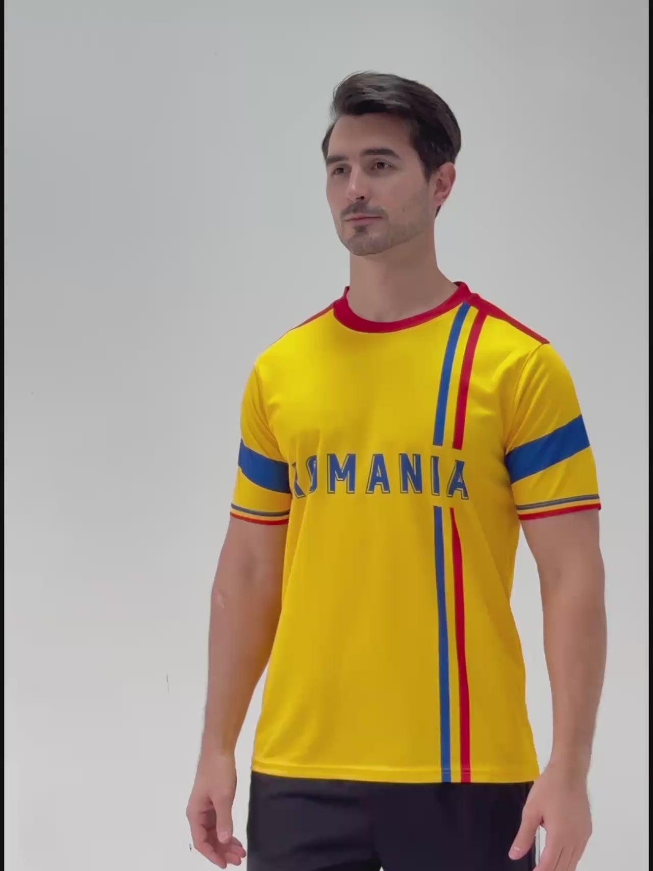 Euro Romania high quality 100% polyester short-sleeved soccer shirt