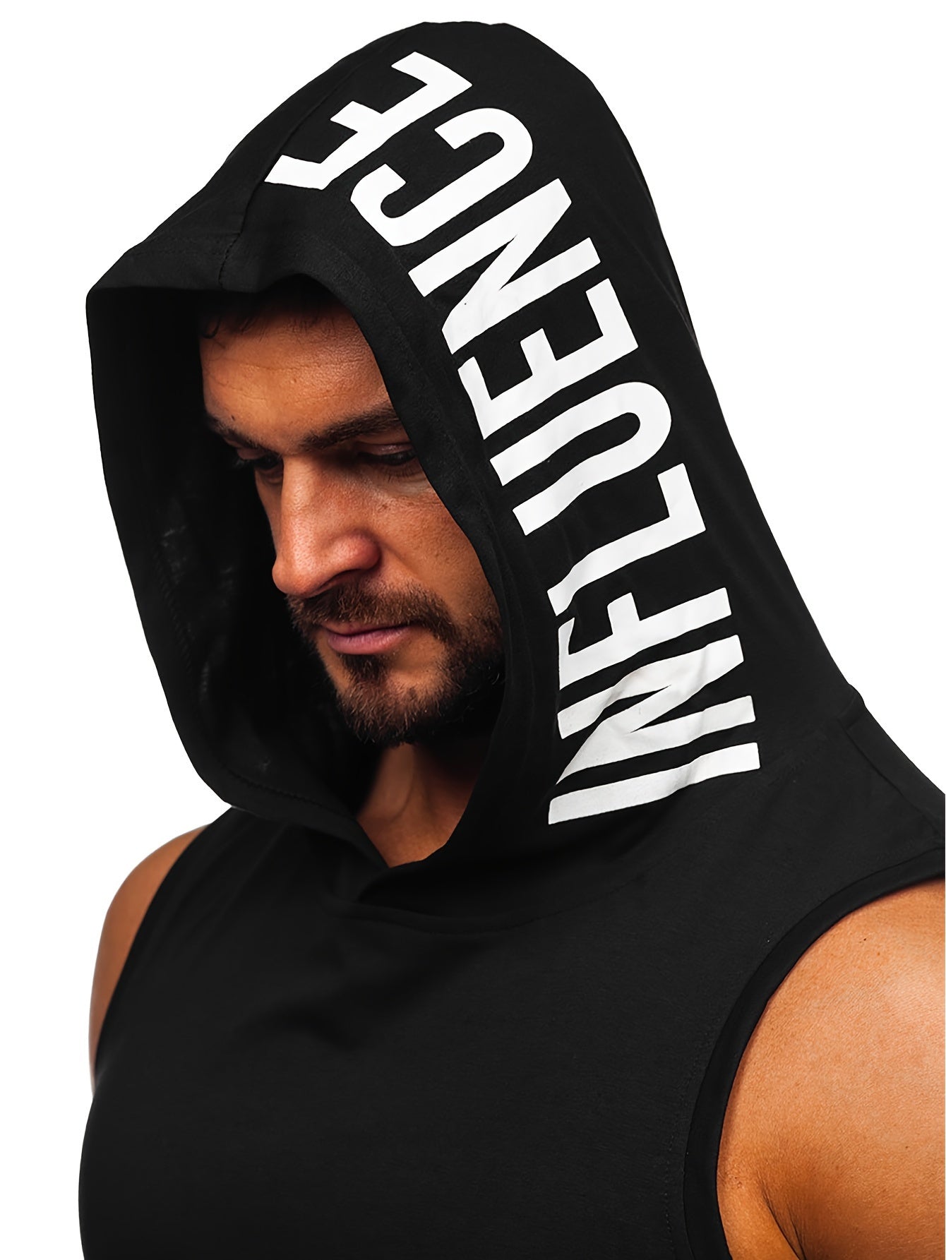 Men's Quick-Dry Hooded Tank Top with Letter Print - Moisture-Wicking Athletic Sleeveless Shirt for Gym & Running