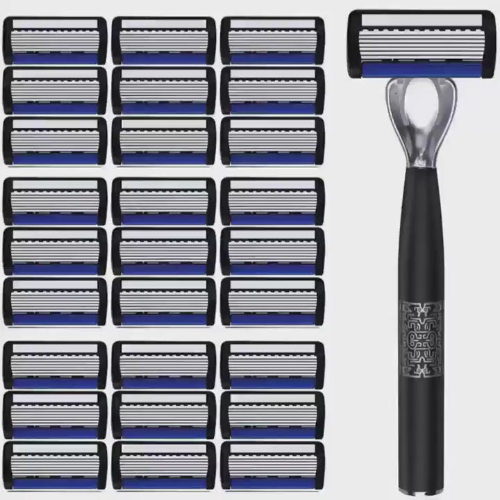 Men's Safety Shaver with Anti-Slip Stainless Steel Handle, 6-Layer Blades, 18/36 Replacement Blades Included