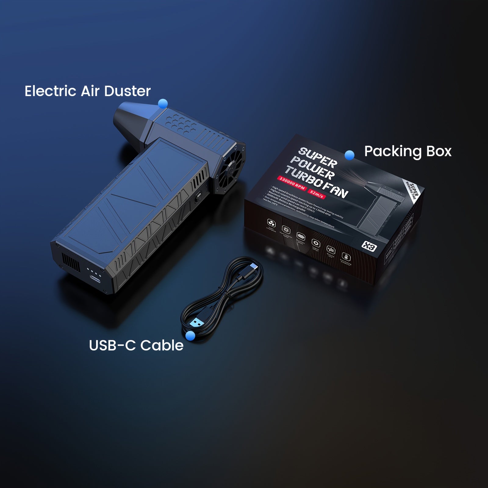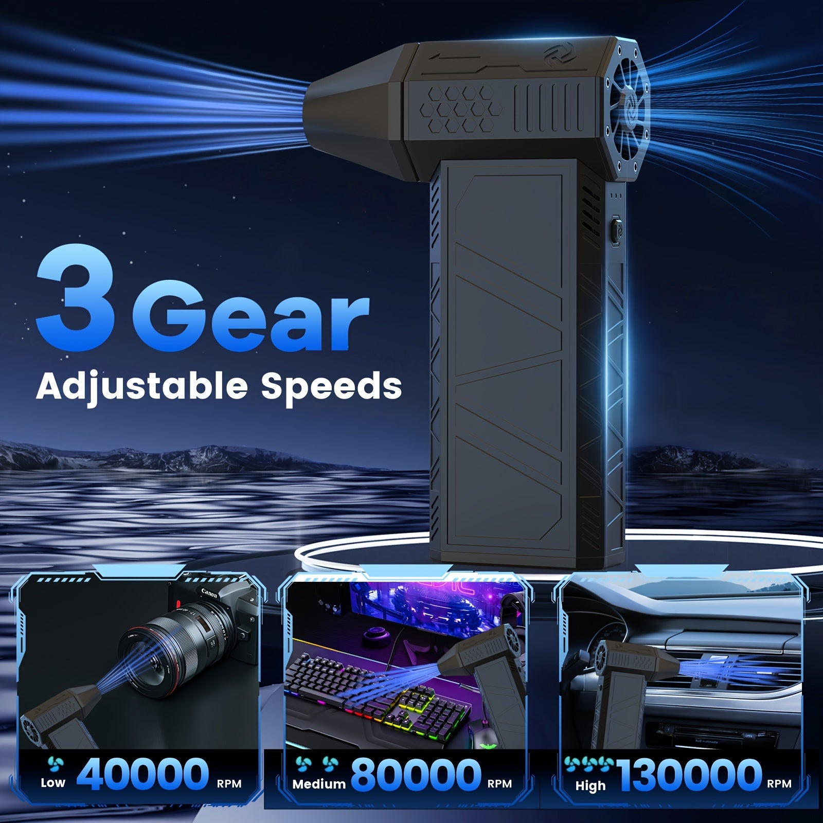 Portable Turbo Jet Air Blower with 130000 RPM, Black, for Car Drying, Cleaning, Camping, BBQ Ignition