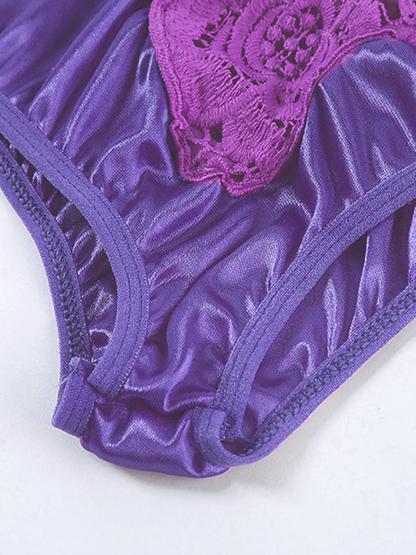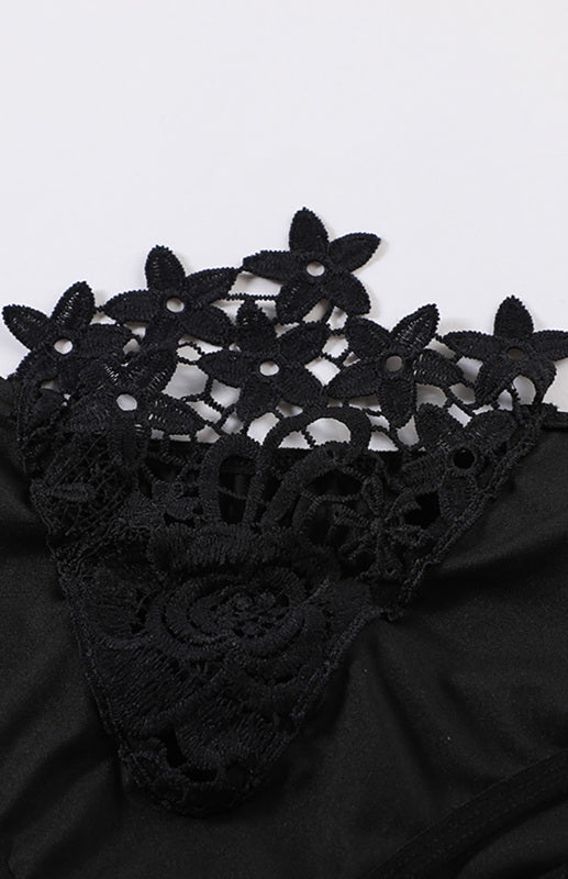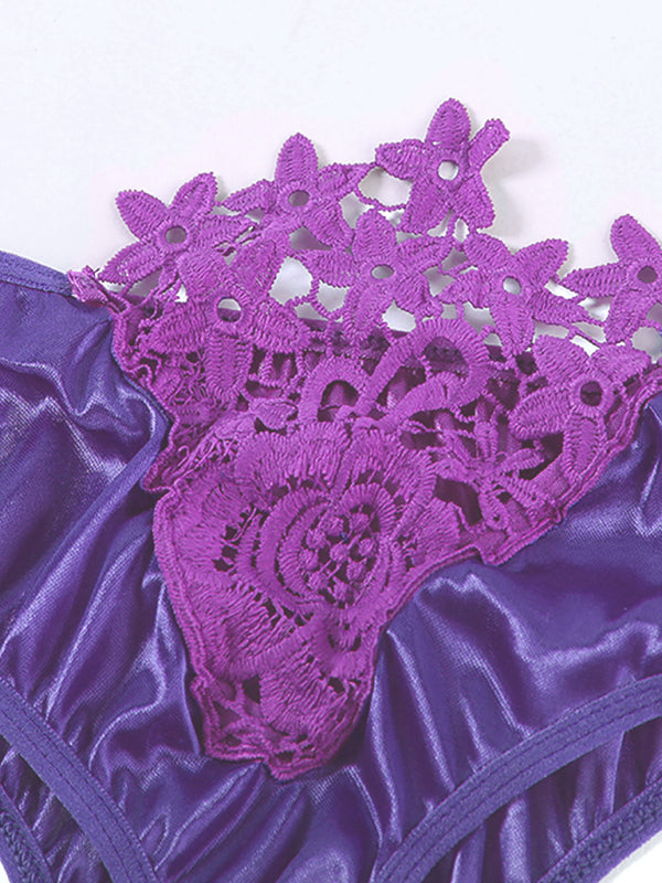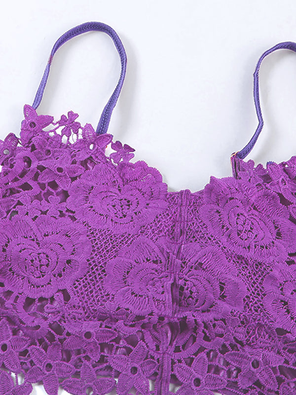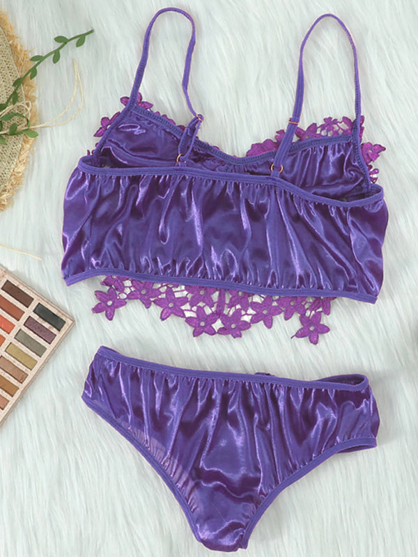 Spaghetti Straps Crochet Lace Hollow Out Bra Thong Lingerie Set