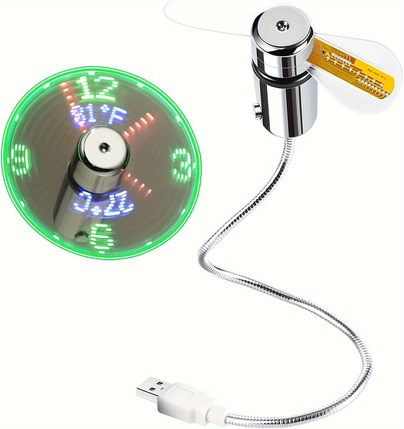 Winter New Christmas Portable USB LED Clock Fan - Energy Saving, Flexible Design, Time Display & Temperature Check