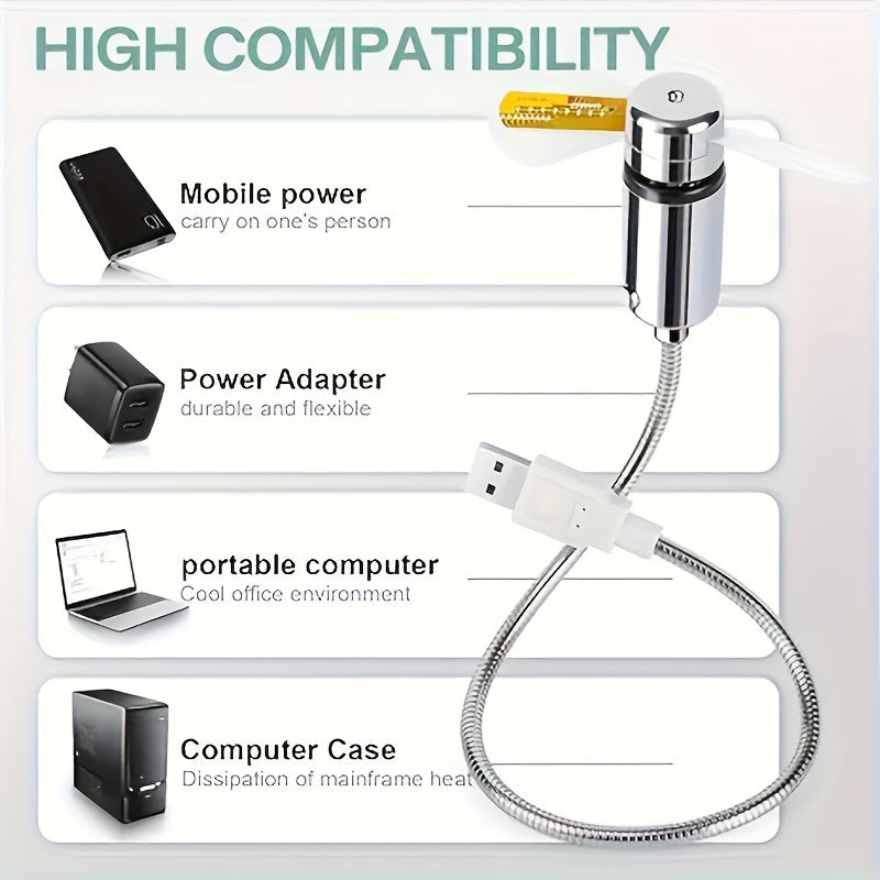 1. Just Connect To Any USB Port On The Computer. Carefully Insert The Flexible Neck So That The Cool Wind Can Be Directed In Any Direction.