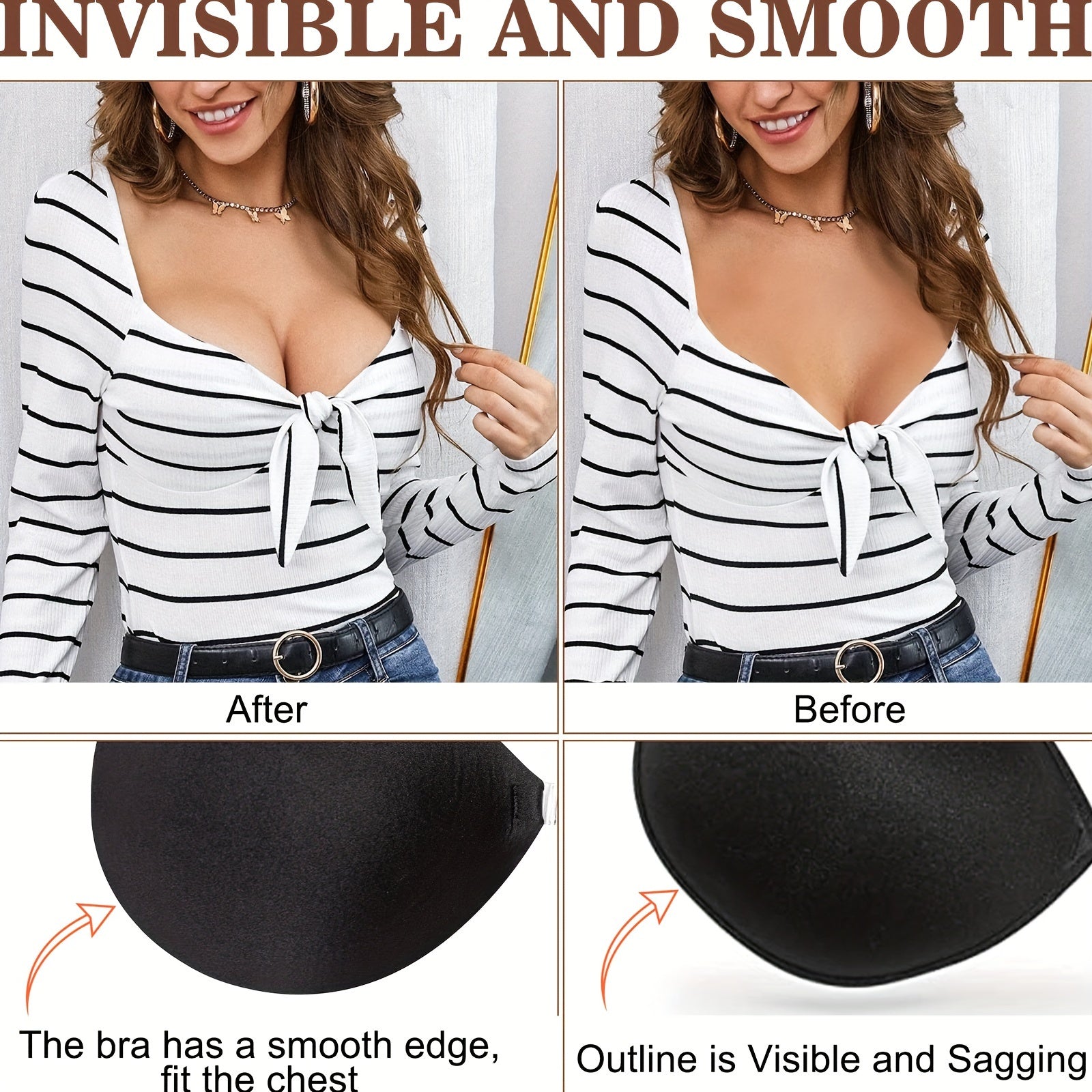 Women's Invisible Bra, Adhesive Nipple Covers, Non-Slip Breathable Underwear, Bridal Bust Stickers, Concealing Petals, Seamless & Gather Support